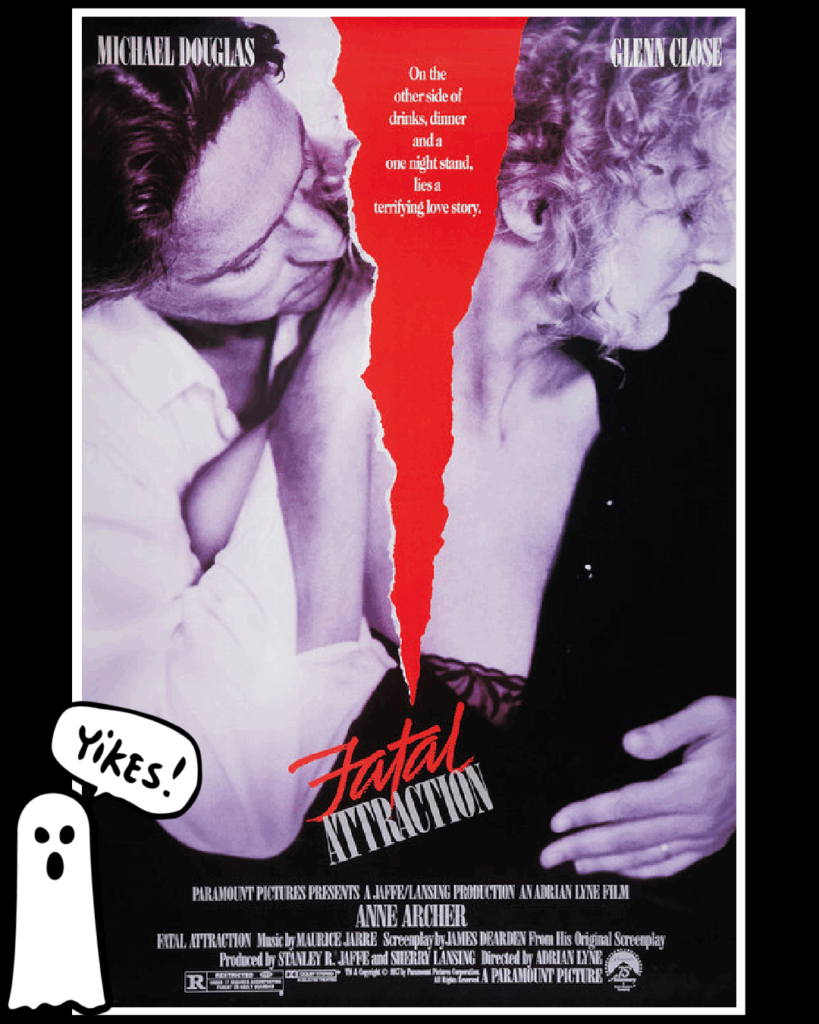 When you think about the hundreds of thousands of frightening films made over the years, it’s fair to see that villains come in all shapes and sizes. We’ve already covered cannibal killers, ghastly ghosts and horrifying hook-wielders, and while they’ve all been truly scary, back in 1987 there was a big screen villain that terrified men EVERYWHERE! No, not Jason Voorhees, although by then there had already been 6 installments of the FRIDAY THE 13TH franchise. No, I’m talking about the “hell hath no fury like a women scorned” kind of bad guy. Indeed, the James Dearden written, Adrian Lyne directed psychological thriller FATAL ATTRACTION became a cautionary tale for men – and let’s face it – bunnies everywhere. In it Michael Douglas stars as Dan Gallagher, a married man who has a weekend affair with a woman named Alex Forrest, played by Glen Close – who let’s just say ‘refuses’ to allow the affair to end. Things get pretty out of hand alright and very, very scary. Mega award-winning film composer Maurice Jarre created the oh so jarring score, but I want to draw your attention to a tip-off of needle drop. I can’t help but feel if we’d been paying closer attention to that first date in the restaurant we would have heard a musical clue. A foreshadowing as it were. While Dan and Alex are flirting across the table – the song-stylings of the Bill Evans Trio can be heard in the background, and as Dan gets closer and closer to making the decision that would threaten everything the music changes to the Victor Young & Edward Heyman standard “When I Fall in Love (It will be Forever).” Of course, it’s a jazz trio with no lyrics, so can you really blame Michael Douglas for not reading the room?!  Never one for spoilers, I’ll only tell you Glen Close would earn an Oscar nomination for her role as the unhinged jilted lover along with the gratitude of husbands everywhere. As Close told Oprah in an interview several years later, she “can’t count the number of men who thank her for saving their marriage.” FATAL ATTRACTION is set to hit Netflix just in time for the scary season on Wednesday, October 29th