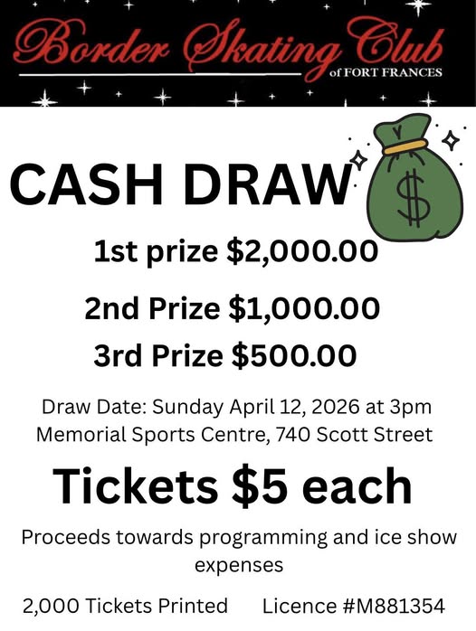 Border Skating Club Cash Draw tickets are also available. You could win big!