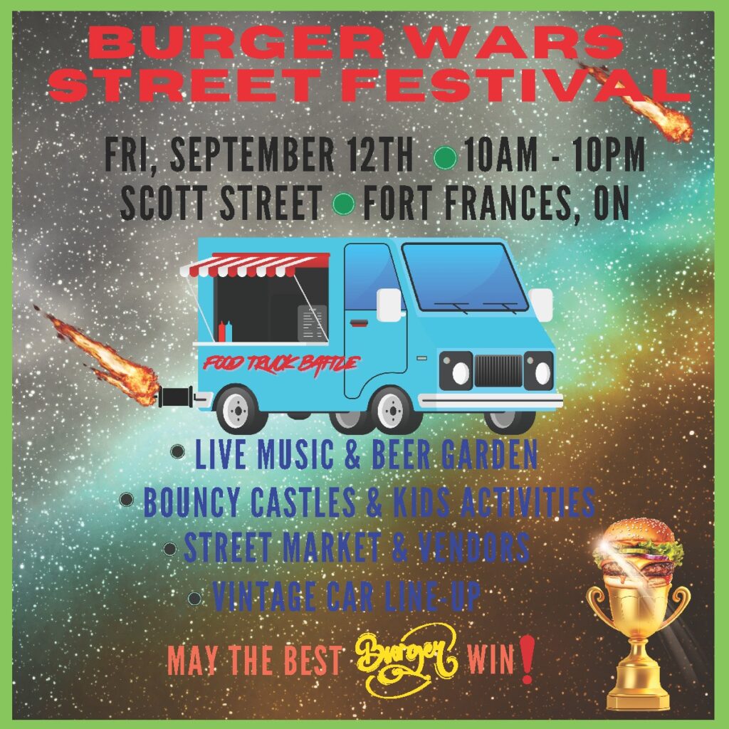 The very first “Burger Wars” Street Festival is happening all along The Great Canadian Main Street on Scott in downtown Fort Frances on Friday, September 12th!