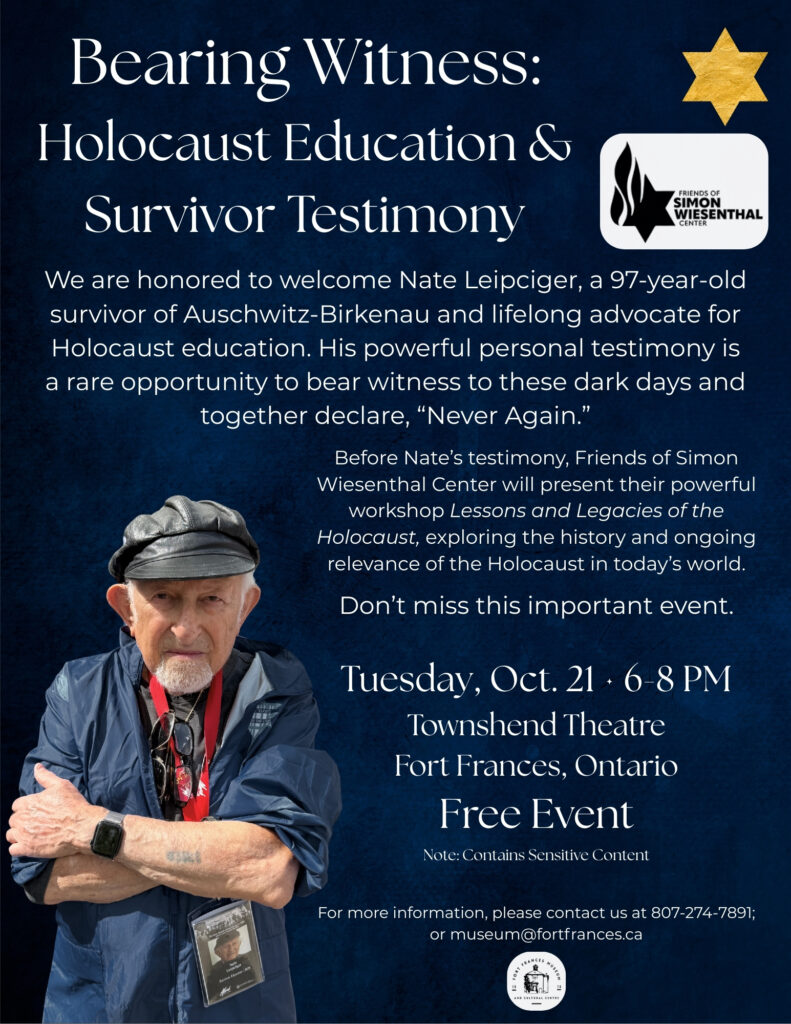A Holocaust survivor will visit Fort Frances next week.