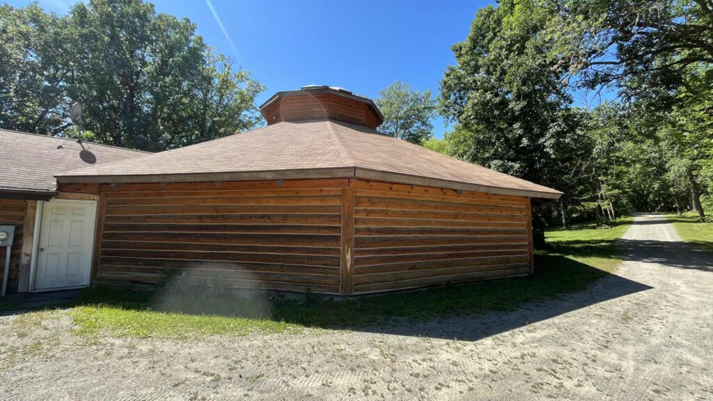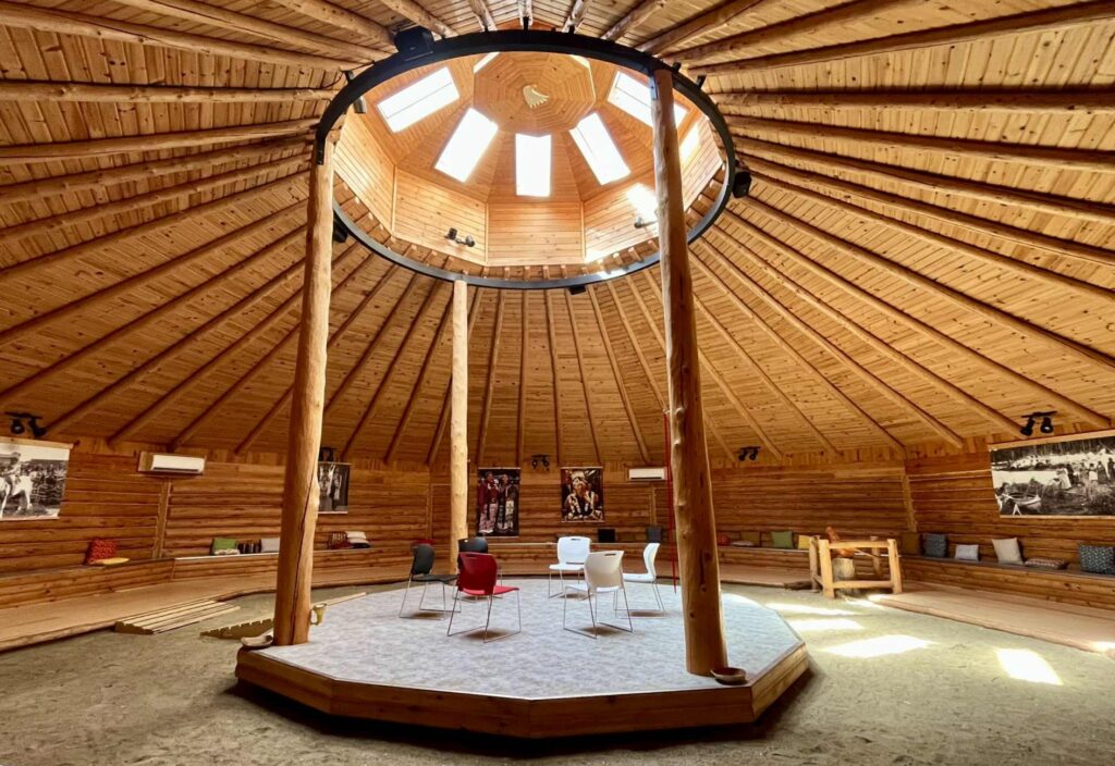 Our next stop was the roundhouse, a striking circular building made of beautiful cedar. While it is fairly new, it is built in keeping with cultural traditions and spiritual teachings. The round design reflects the Anishinaabe belief that circles represent balance and continuity.