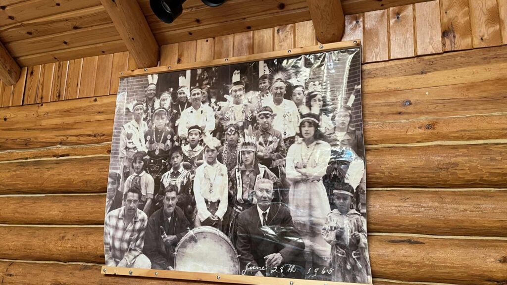 Inside, cedar poles mark the four directions, and the earthen floor in the middle circle ensures visitors remain connected to the land itself. Photographs of the community’s history line the walls, and Shy-Leigh shared stories of Elders and community members who had visions in their dreams guiding parts of the interior design. Walking inside, I felt both grounded and uplifted, as though the space held the wisdom of many voices.
