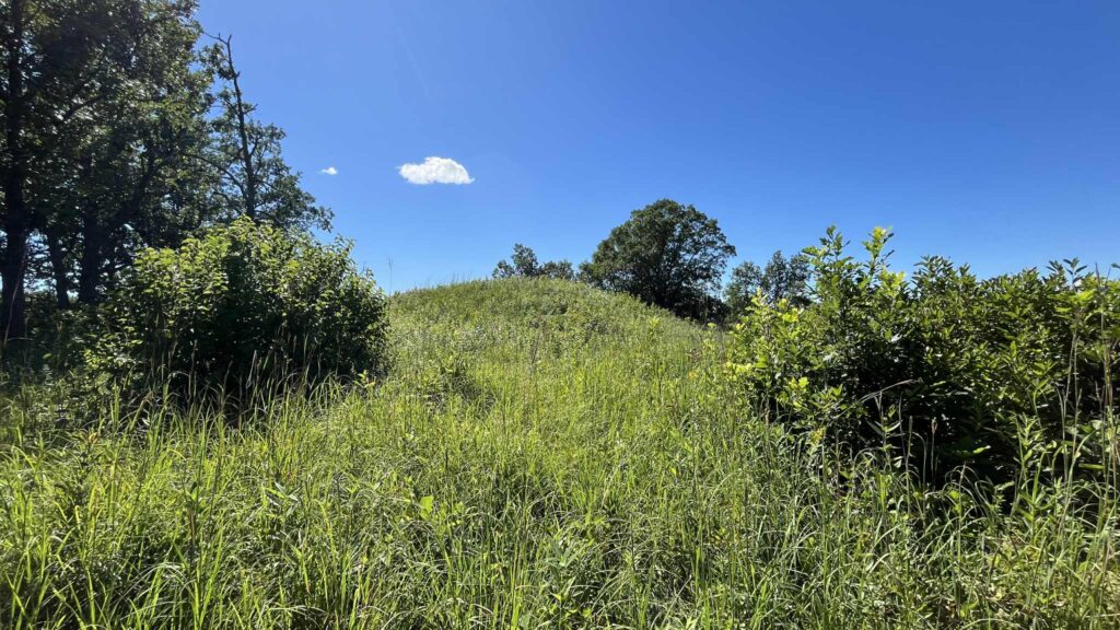 The mounds themselves are ancient burial sites, built by Indigenous Peoples who called this region home for over 8,000 years. The first mound builders here were from the Laurel Complex (about 2,300 years ago), and later the Blackduck and Selkirk groups continued the tradition of building mounds, each culture contributing its style, its pottery and artifacts, and its stories. These mounds are impressive, some rising as high a two‑storey building (7m), standing alongside the river, visible still today as monuments to people whose names we may never know.